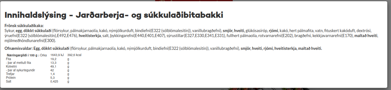 Sun: kaffisnittur 1, kaffisnittur 2, tortillas, samlokur; kjúklingabollur, jarðarberja- og súkkulaðibitar.